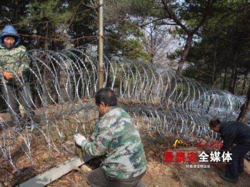 天燭峰管理區(qū)風(fēng)水嶺是重點(diǎn)防火路段,近幾年,戶外旅行日漸盛行,不少驢友結(jié)伴走野路登泰山,體驗(yàn)探險。從2011年開始,泰山景區(qū)開始設(shè)立隔離網(wǎng),長度達(dá)17多公里。去年,管理區(qū)工作人員還曾經(jīng)查堵過試圖剪斷隔離網(wǎng)進(jìn)山的青島驢友??紤]到單純鐵絲網(wǎng)容易被破壞的因素,管理區(qū)在防火隔離網(wǎng)內(nèi)加裝刀片刺繩。