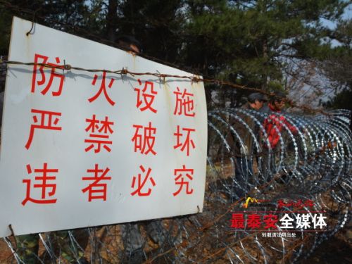 天燭峰管理區(qū)風(fēng)水嶺是重點(diǎn)防火路段,近幾年,戶外旅行日漸盛行,不少驢友結(jié)伴走野路登泰山,體驗(yàn)探險。從2011年開始,泰山景區(qū)開始設(shè)立隔離網(wǎng),長度達(dá)17多公里。去年,管理區(qū)工作人員還曾經(jīng)查堵過試圖剪斷隔離網(wǎng)進(jìn)山的青島驢友??紤]到單純鐵絲網(wǎng)容易被破壞的因素,管理區(qū)在防火隔離網(wǎng)內(nèi)加裝刀片刺繩。